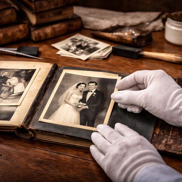 Whether an album has become worn with age, suffered damage over time, or requires careful rebinding and repair, every restoration is approached with sensitivity, craftsmanship, and respect for its story. Our goal is to restore the album’s structure and presentation while preserving the memories it holds for future generations.